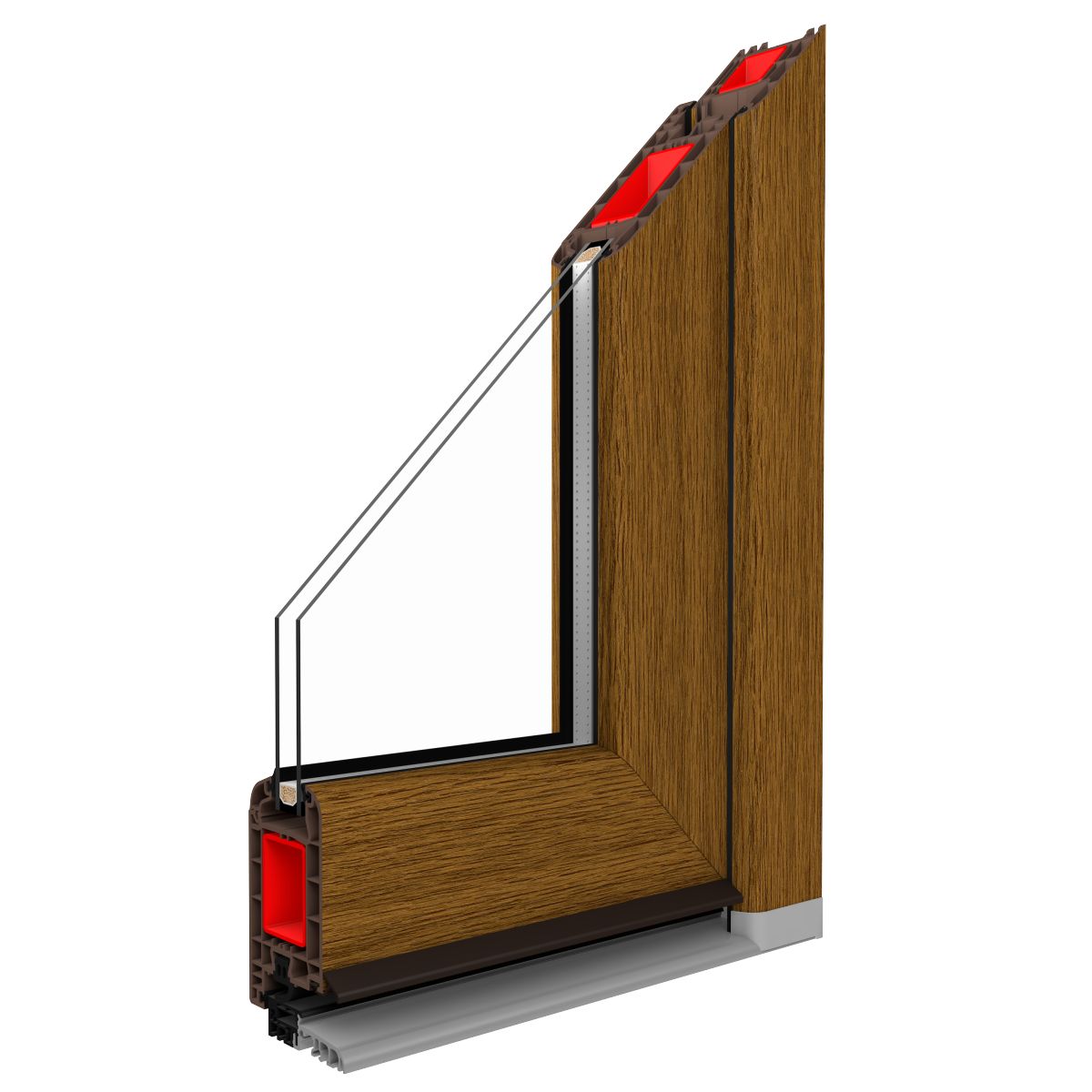 Vi använder oss av material av högsta kvalitet, vilket gör att våra dörrar håller i flera år. Som standard är dörren utrustad med en aluminiumtröskel med köldbrygga, vilket resulterar i höga värmeisoleringsegenskaper.