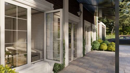 Våra egenutformade utskjutningsbara sidohängda fönster består av en mycket varm 5-kammarprofil i A-klass som enbart är tillverkad av primärmaterial. Systemet är försett med dubbeltätning och beslag av hög kvalitet, vilket garanterar mycket god användarkomfort i flera år.