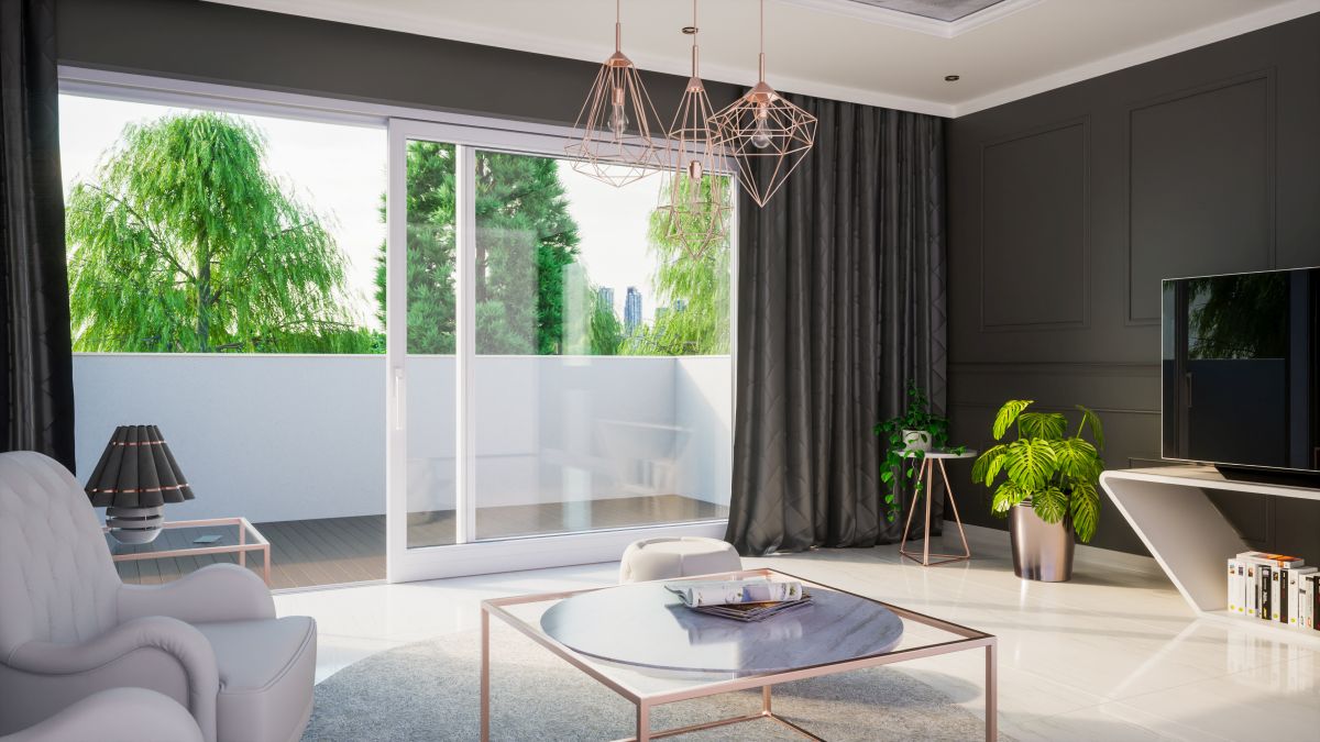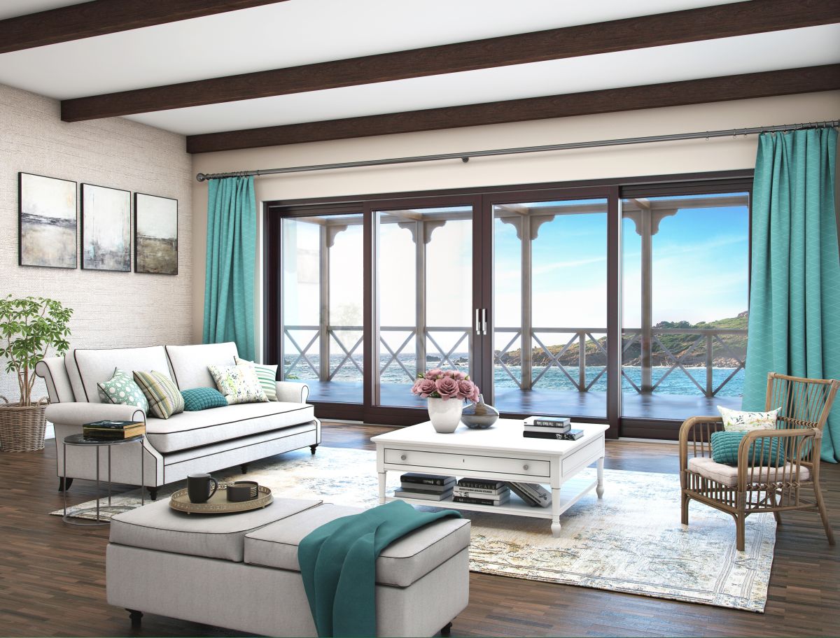 Denna lyft-och skjutdörr av trä för terrasser är avsedd för stora glaspartier och släpper in mycket dagsljus i rummet.